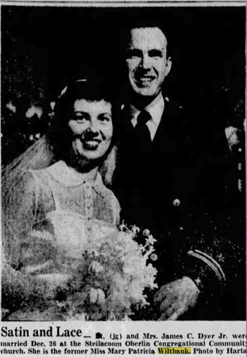 Mary married James C. DYER Jr., son of James C. DYER and Unknown, on 26 Dec 1951 in WA. |